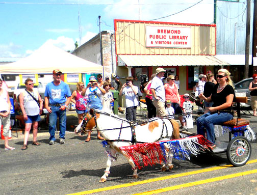 PHOTOS FROM THE 2011 BREMOND POLISH PICKLE DAYS PARADEI've attended several Bremond Polish Pickle Days parades but this one has to be one of the best in memory. Lot's of tractors, restored muscle cars, restored Model A's, horse drawn vehicles, funny floats, a tribute float to Bob Wills, minature horses and mules, and even a stagecoach. Lots of arts and crafts booths, food booths and of course, pickle sales. Cathy Penick had the Coal Mine Restaurant serving Polish food and a large appreciative crown dining there. Even the Black Bean provided a cool having from the heat where visitors could down a cool one. Great festival!