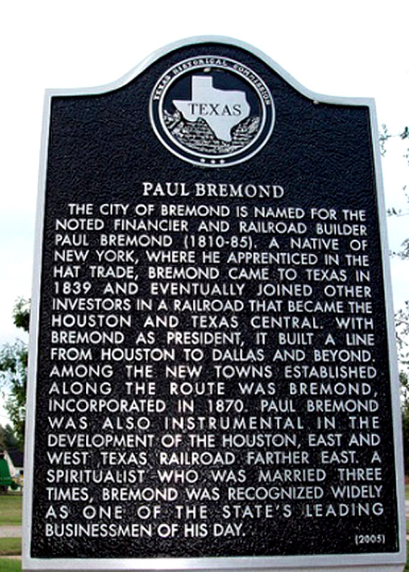 Bremond named for railroad developer, Paul Bremond.
