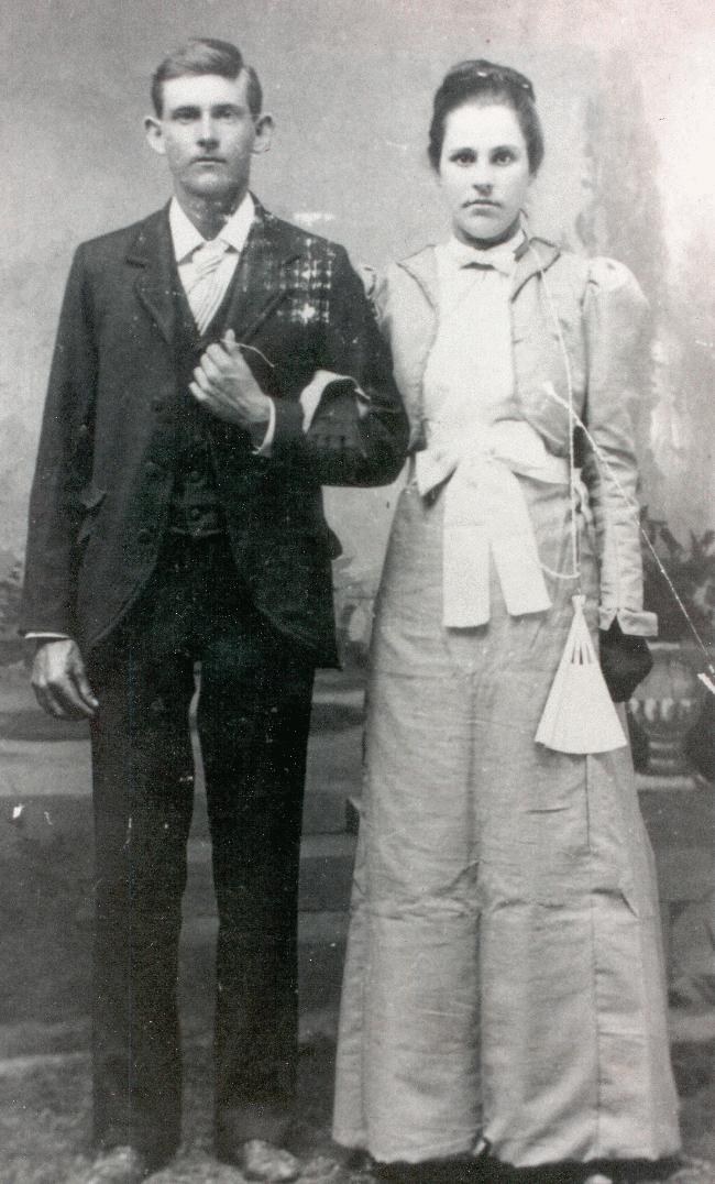 Amos Maroy Seeley and Lydia Frances Hawthorne on their wedding day in September of 1900 in Milam County, Texas.