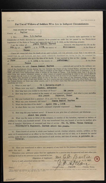 Bryson Seth S.; PVT CO K1 REGT Texas Inf, Spanish American War; Born November 16, 1876; Died December 26, 1948