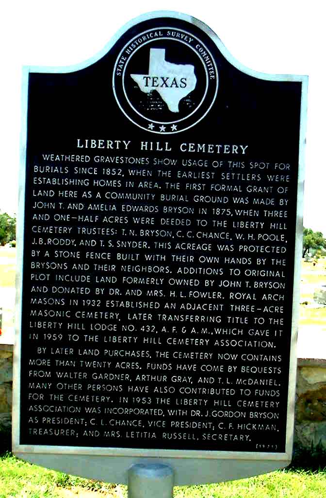The Liberty Hill Cemetery is the final resting place for a large number of people that helped build the Liberty Hill area of Central Texas into a great place to live.