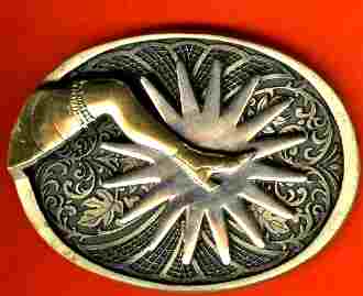 Another limited edition solid brass buckle commemorating an Indian Warrior in prayer with the Great Spirit manufactured by the Great American Buckle Company (manufactured in 1982).