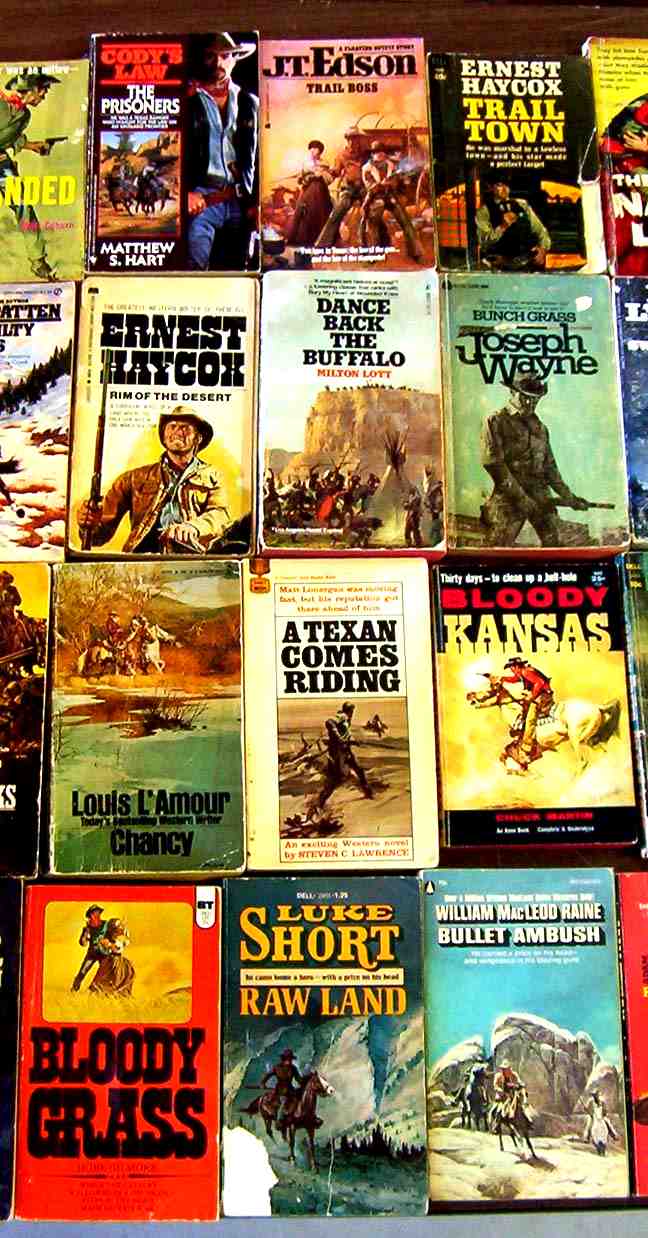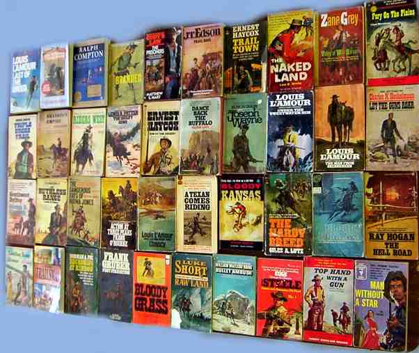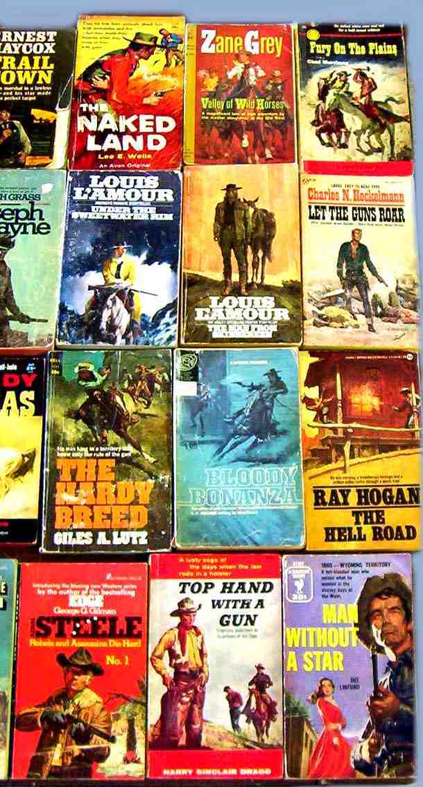 Assortment of 8 different paper back western novels Selection of 8 different Vintage Zane Grey or Louis Lamour western paperback books (you get the luck of the draw from a library of over 200 books). These are great old west stories covering every aspect of life in the old west.