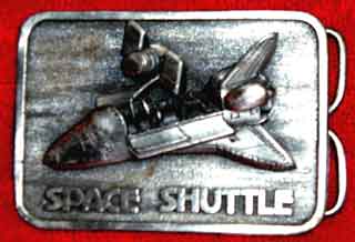 Space Shuttle Belt Buckle, 3-d design of shuttle protrudes a half inch from the buckle front surface.