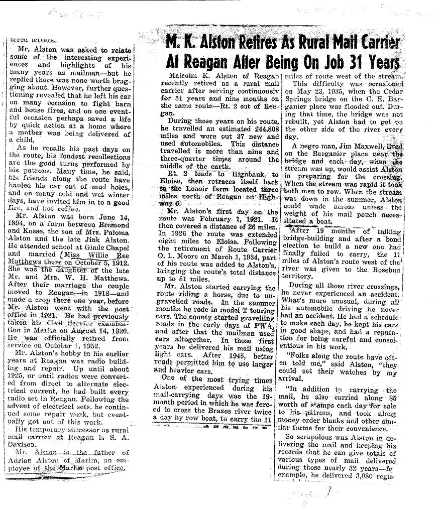My brother Keith, who lives in Marlin, sent me this article about my grandfather, M.K. Alston. He and his