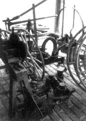Wagon Wheel Repair Equipment. This old equipment was still on hand when John Kubiak ran the old Lonnie Robbins Blacksmith Shop in Reagan.