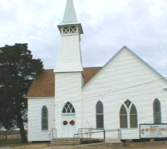 Reagan Methodist Church founded in 1873 at Shady Grove near the Little Brazos River, approximately 3-1/2 miles east of Reagan. The church later moved to Railroad Avenue (main street). When that building burned, the present Reagan Methodist Church (shown in the above photo) was errected in 1893 next door to the Reagan School campus and adjacent to one of the oldest log cabins in the region. William Reagan, for whom the town of Reagan was named, was one of the original members of the Reagan Methodist church.