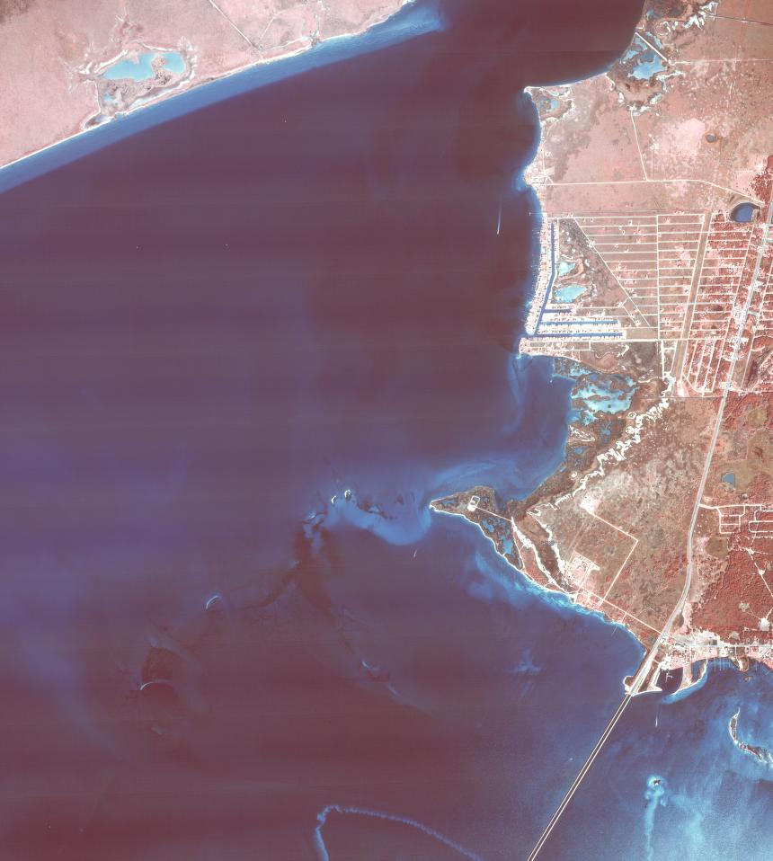 The above satellite view of the Holiday Beach subdivision shows the waterways and water-front homes in the subdivision and development within the subdivision. The property address is 336 N. West Misty Oaks Lane and is located a few hundred yards from the bayfront. Copano Bay State Fishing Pier , located just to the south of the property, has been made a part of a state park with 2500 feet of lighted fishing pier on the north side and 6190 feet of lighted fishing pier on the south side. This causeway is complete with rest rooms and bait and concession stands and represents the largest lighted pier in the US and perhaps even the world.