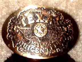 These Ranger spurs measure 3-1/8 inches wide at the boot end and feature 1-5/8 inch diameter rowels. Each spur features a minature Texas Ranger badge. The spurs have original spur straps and came from a Liberty Hill, Texas family. Possibly belonging to Ranger Mathers.