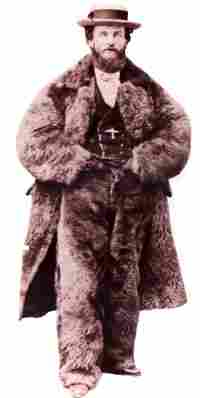 Despite these efforts, Black Bart would suddenly appear on a lonely stage road, wearing a light-colored duster and a flour sack over his head with a derby hat perched on top of it. Armed with a shotgun, he'd order in his distinctive deep voice, "Throw down the box!" He was extremely efficient at collecting all the loot in the treasure boxes and never once bothered with small stuff like the passengers valuables. In fact, when a panicked woman tossed him her purse, he gentlemanly returned it back to her and said "Thank you, madam, but I don't need your money. I only want Wells Fargo's."